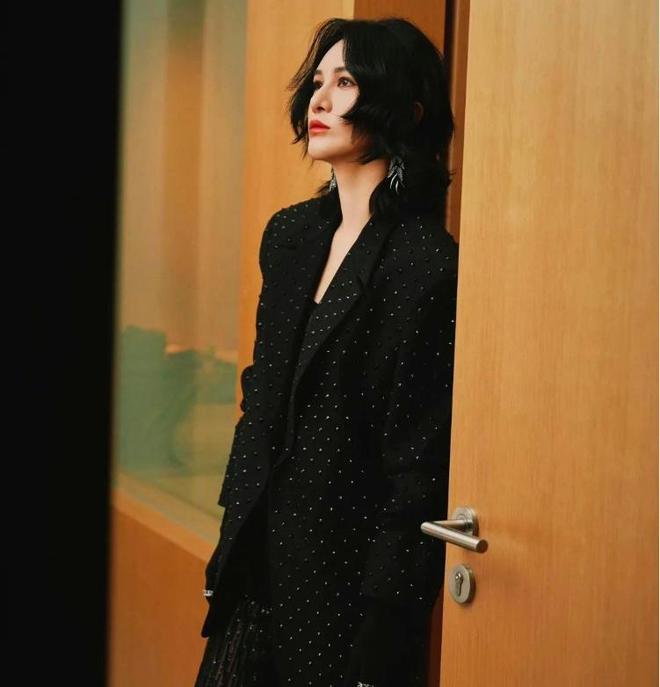 再瞧瞧那件修身西服,这可真是整个造型的点睛神来之笔!款式简洁又大气,版型更是没得说,紧紧贴合身体,却又不会有束缚感,就像是为尚雯婕量身打造的 “时尚战甲”。它往身上一穿,瞬间提升了整体造型的时尚度和高级感。与黑色亮片裙搭配在一起,那协调性简直绝了,就像两个默契十足的老搭档,携手打造出一种霸气又不失优雅的风格。