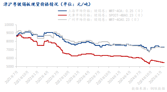 原料端看,2025年热轧供应预期仍然偏高,马口铁热轧基料也会受到一定影响,马口铁基料成本价格重心还有下移预期。锡锭现货价格呈现拉涨,为当前镀锡板现货价格的主要支撑。
